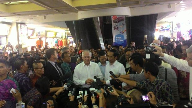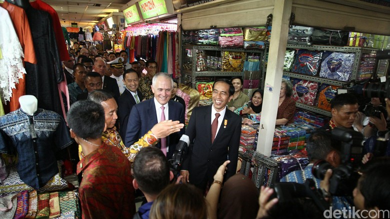 Presiden Jokowi dan PM Turnbull blusukan ke Pasar Blok A Tanah Abang. Pengunjung pasar begitu antusias dan berebut salaman dengan kedua pimpinan negara itu, tak peduli pada gerah yang menyengat.
