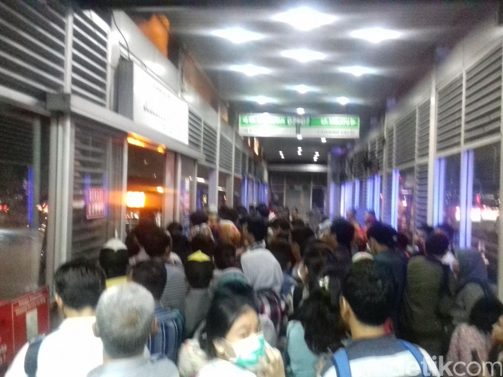 Kepadatan di halte busway (Foto: Nathania Riris Michico/detikcom)