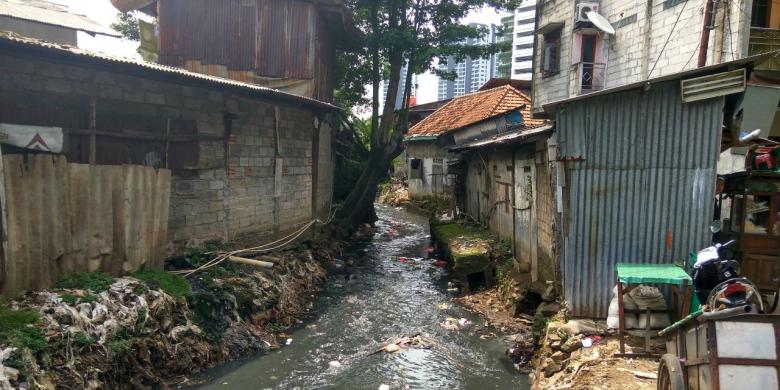 Kali Grogol di belakang Gandaria City, Kebayoran Lama, Jakarta Selatan, Senin (31/10/2016).